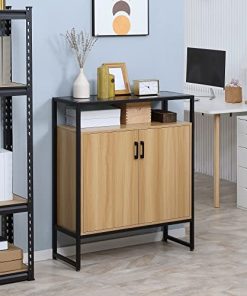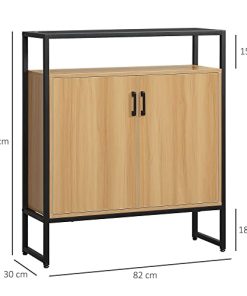 HOMCOM Buffet de Cuisine Meuble de Rangement Bureau avec Placard 2 Portes et 1 étagère en Bois et Verre – 82 x 30 x 98 cm – Cadre en métal Noir