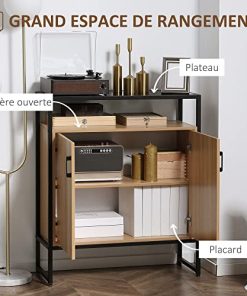 GRANDE CAPACITÉ DE RANGEMENT : Doté d’un grand plateau, d’un placard double porte avec étagère avec 3 poignées en acier, le buffet de rangement offre une grande capacité de rangement pour votre linge de maison, documents et autres affaires.