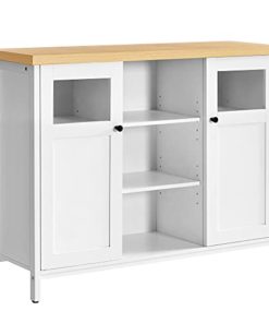 GRANDE CAPACITÉ DE RANGEMENT : Doté d’un grand plateau, d’un placard double porte avec étagère avec 3 poignées en acier, le buffet de rangement offre une grande capacité de rangement pour votre linge de maison, documents et autres affaires.